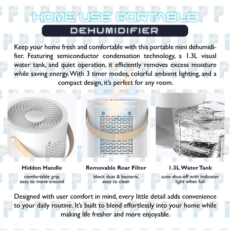 • Time-Saving & Energy-Efficient – Long-lasting dehumidification with low power usage.