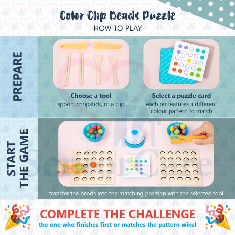 Colours Beads Puzzle Board Game – Spoon, Chopstick, Clip Training