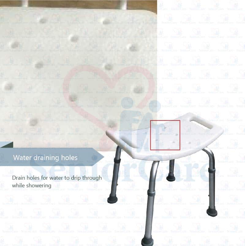 With its simple and effective design, the HappyBath Shower Chair offers a safe bath experience by fulfilling your essential needs with its textured anti-slip seat and adjustable height feature.