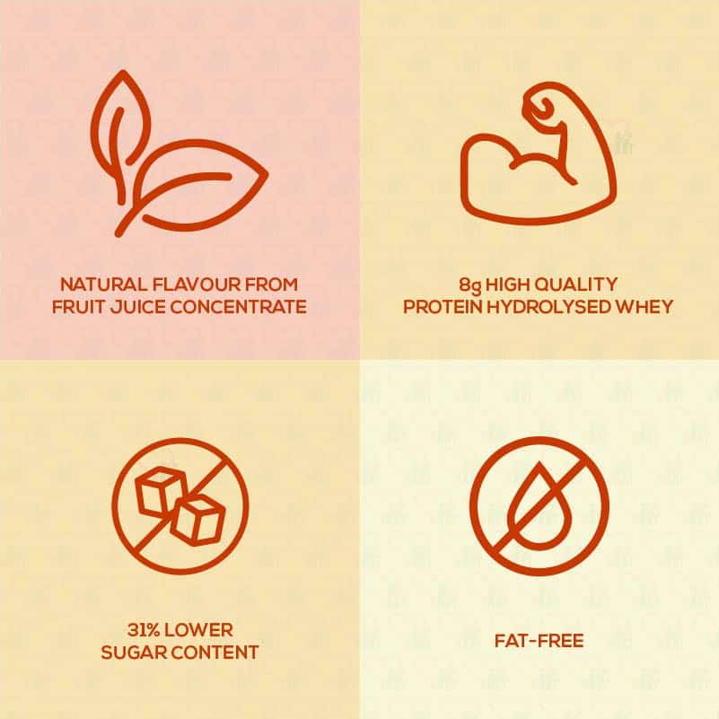Delivers excellent nutritional benefits: 300kcal energy and 8g of high quality hydrolysed whey protein in each serving