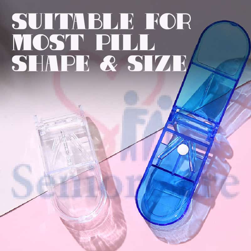 - Stainless steel blade cuts pills in half for easier swallowing or smaller doses