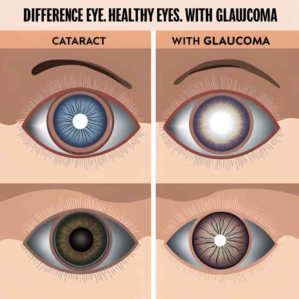 Cataracts cause blurry vision due to lens clouding, while glaucoma damages the optic nerve and leads to peripheral vision loss.